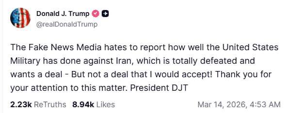 ⚡️Іран погодиться обговорювати закінчення війни лише за умов повного відшкодування збитків від США та гарантії їхнього виведення з Перської затоки, — заявив високопоставлений іранський чиновник Мохсен Резає