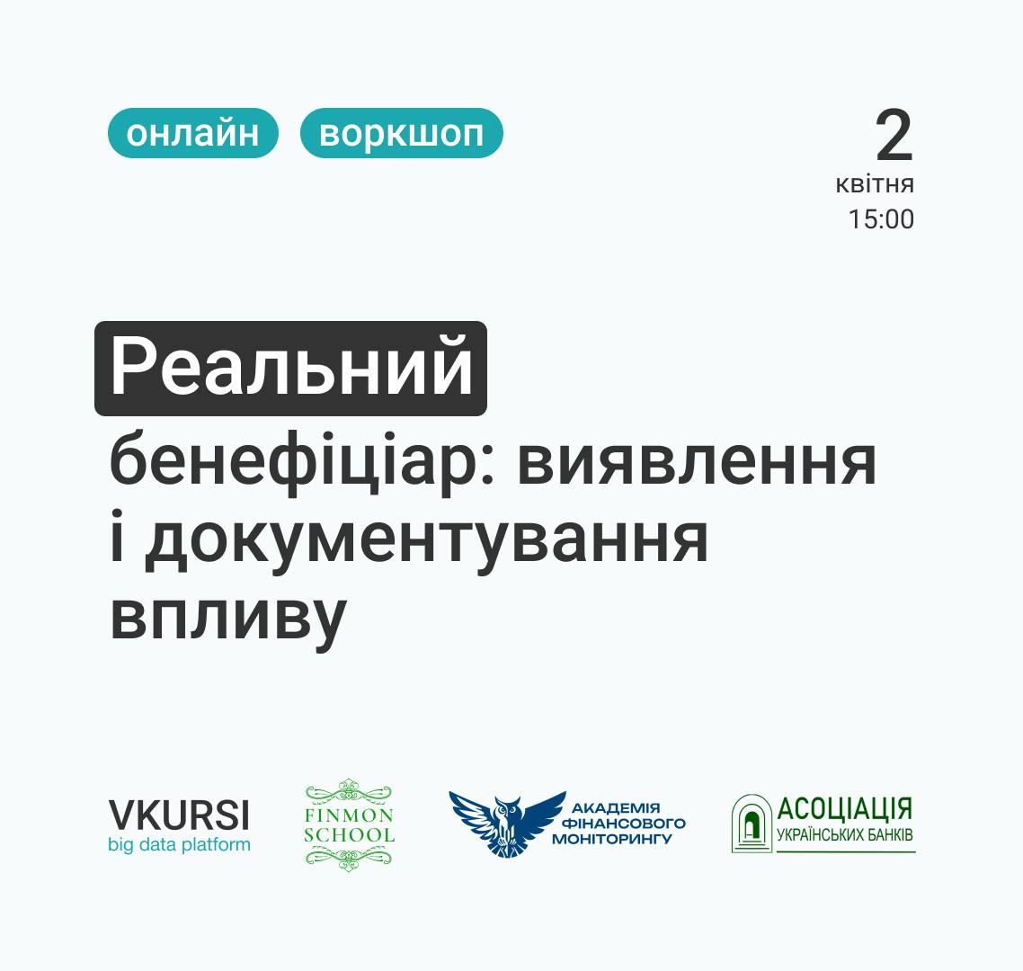 🔥FinMon School спільно з платформою VKURSI, Академією фінмоніторингу та Асоціацією українських банків запрошує на воркшоп «Реальний бенефіціар: виявлення і документування впливу».