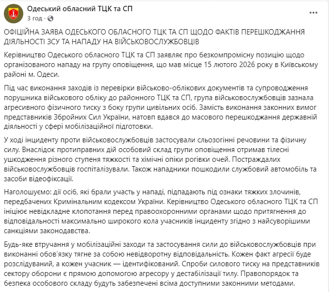 Під час інциденту цивільні особи застосували проти військових сльозогінний газ та нанесли їм тілесні ушкодження. Постраждалих госпіталізували з діагнозом хімічний опік рогівки очей та травмами різного ступеня тяжкості.