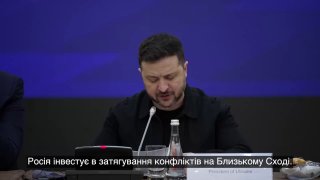 Рф інвестує в затягування конфліктів на Близькому Сході. Війни там полегшують розпалювання цієї війни тут, у Європі. Саме так було після атаки ХАМАСу на Ізраїль. Те саме і з війною, яку веде іранський режим, намагаючись зберегти своє існування, — Зеленський