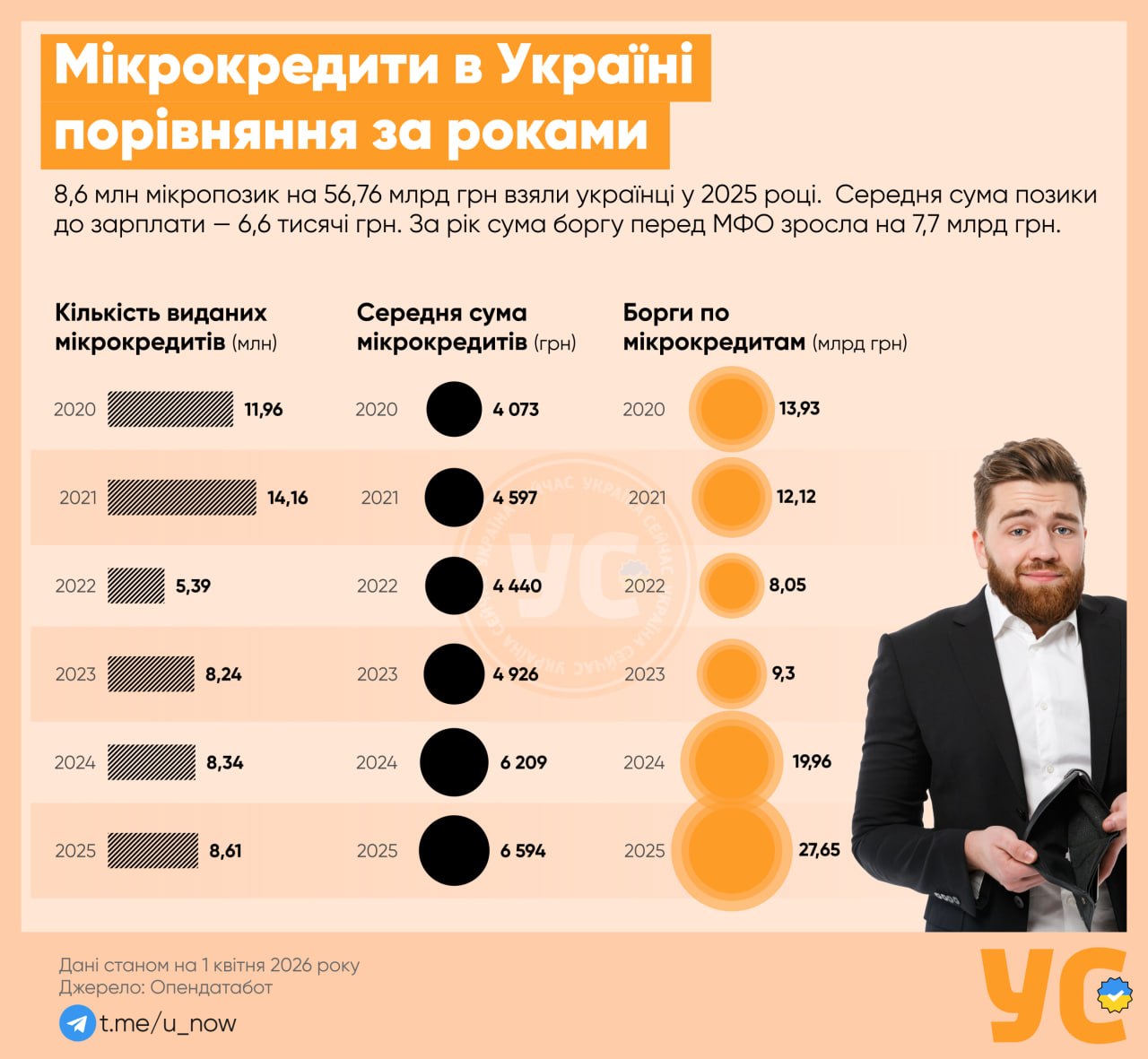 🇺🇦 Українці оформили 8,6 млн мікрокредитів за рік: борги зросли до 27,6 млрд грн, — інфографіка «УС»