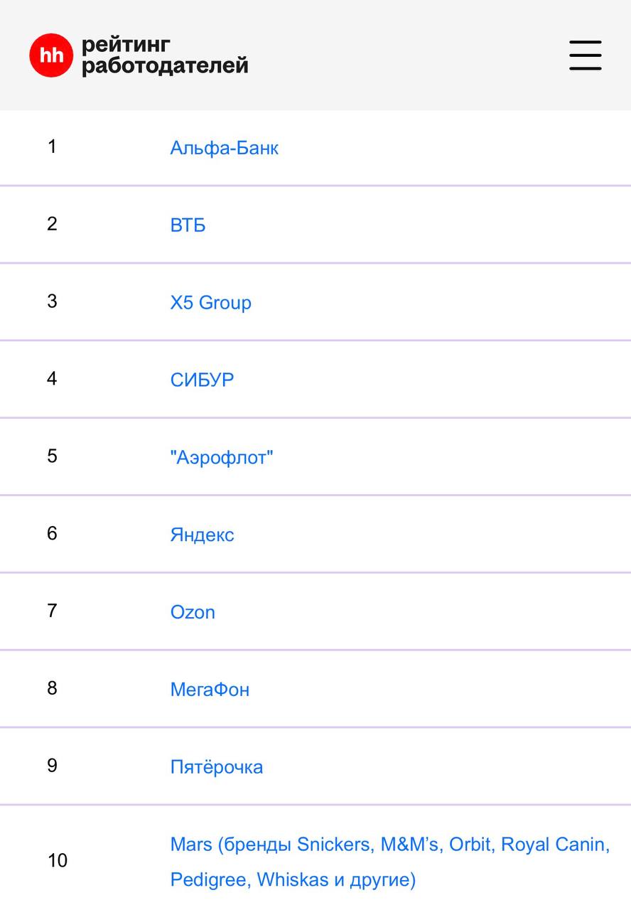 В топ‑3 рейтинга лучших работодателей России от hh.ru снова влетает X5. В этом году они не только лидеры среди работодателей страны, но и №1 в своей отрасли! «Пятёрочка», «Перекрёсток», «Чижик» — все сети X5 вошли в топ‑5 сегмента ретейл.