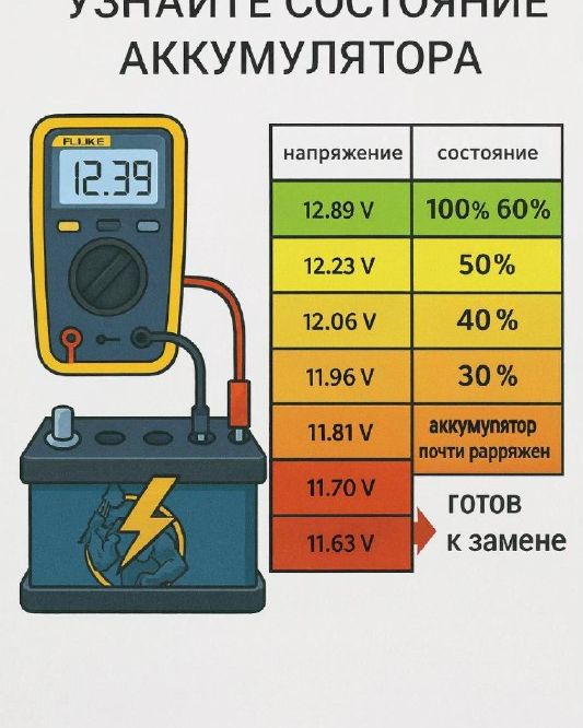 Понять, в каком состоянии находится аккумулятор автомобиля, можно с помощью простых методов. Знание уровня заряда и состояния батареи поможет избежать проблем с запуском и продлит срок службы аккумулятора.