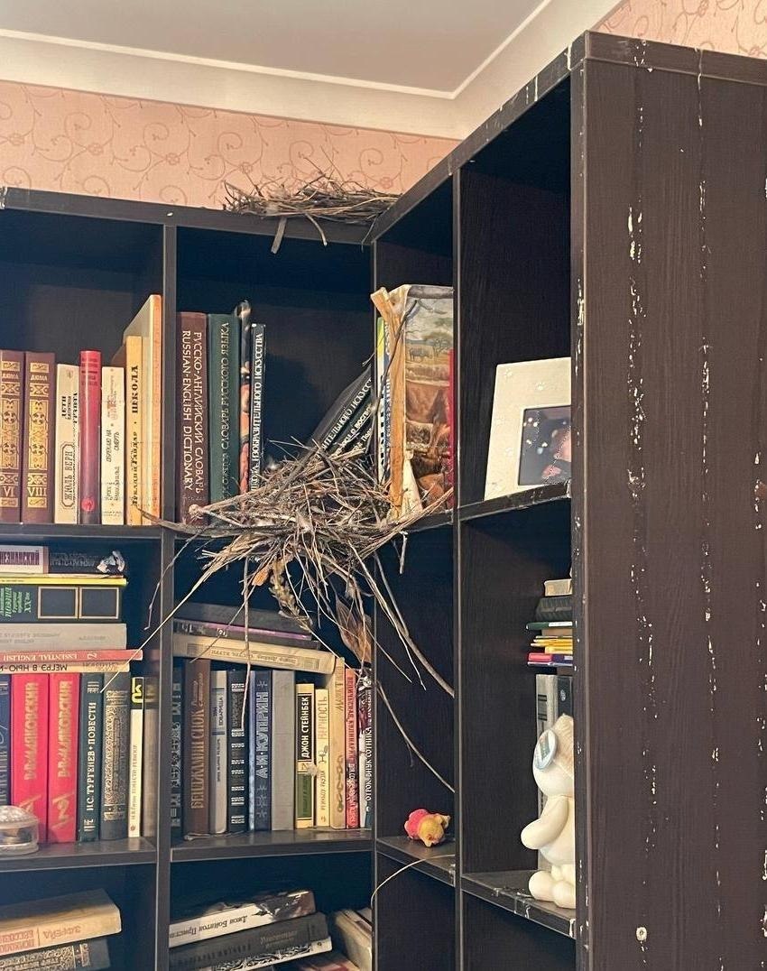 По её словам, окно, вероятно, открылось из-за ветра, и в помещение залетели птицы. Голуби испортили мебель и синтезатор, разбросали перья и даже свили гнёзда.