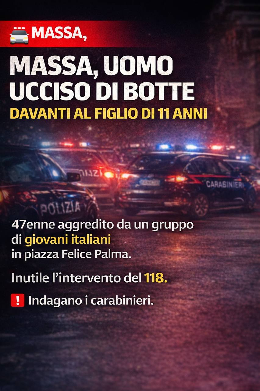 🚨 Massa, 47enne muore dopo un’aggressione: tragedia davanti al figlio di 11 anni