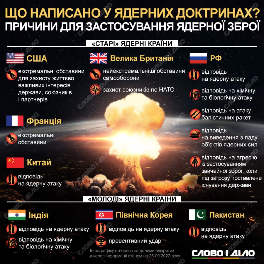 ▪️Станом на 2024-2025 роки у світі налічується дев'ять країн, що мають ядерну зброю. Це США, Росія, Велика Британія, Франція, Китай, Індія, Пакистан, Північна Корея та Ізраїль.