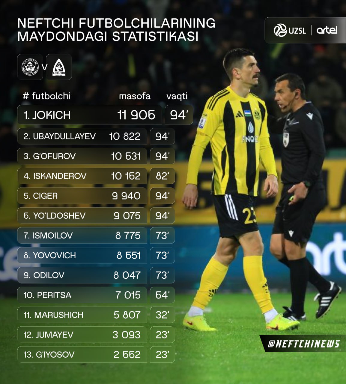 Vodiy sharafini himoya qilayotgan jamoamizni ushbu muhim bahsda sariq-qora ranglar ostida birlashib, Neftchini Superkubok sari birga olib boraylik!