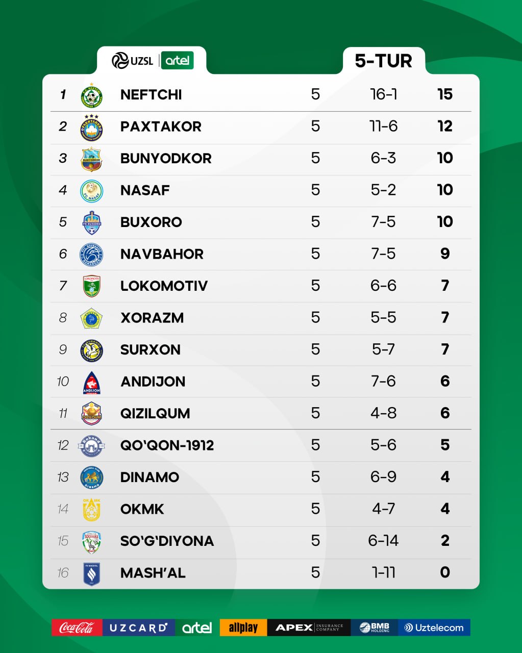 Mart oyida bo'lib o'tgan 5 ta uchrashuvning barchasida g'alaba qozonib, turnir jadvalida 12 ochko bilan birinchi o'ringa chiqib olgan "Neftchi" o'z hisobiga debyut Superkubogini yozib qo'ydi.
