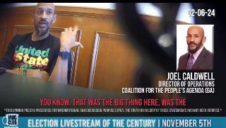 Joel Caldwell: “That’s what happened in 2020, ‘cause that’s when the ballots—they started stuffing them ballots and people stuffing them ballots, and they got videotape of them, but nobody talks about it. They wanted—that’s why Trump was making that big deal about it, because you got—you see it on videotape. It’s like, come on. We see the man pull up and put a hundred ballots in this box. You know? You can’t do that sh*t.