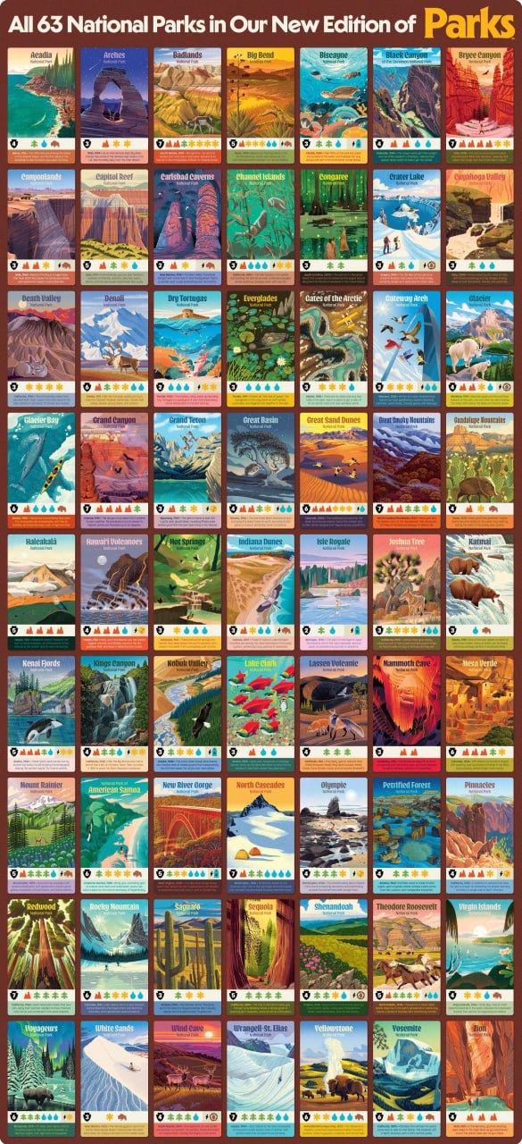 Приготовьтесь открыть для себя захватывающую красоту дикой природы национальных парков США: от легендарного Йеллоустона и живописной Акадии до величественного Большого каньона и древних лесов Редвуда. Вас ждут Скалистые горы, безмятежное озеро Кларк, таинственные Эверглейдс и множество других сокровищ.