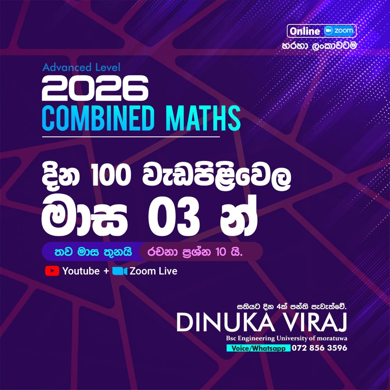 ( ⚠️ ගුණාත්මක සේවාවක් සැපයීම සදහා සීමිත සිසුන් ප්රමාණයක් පමණක් බඳවා ගැනේ. අප්රේල් මස වැඩපිළිවෙල අරඹුණා පමණි ඉක්මන් කරන්න.