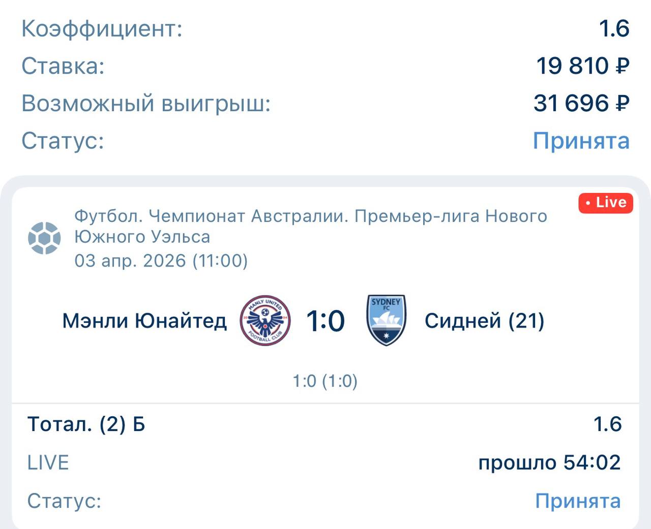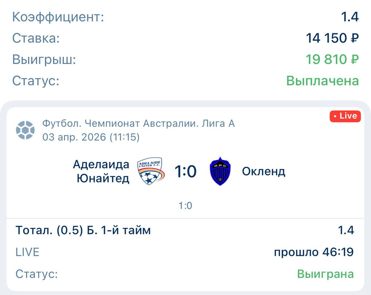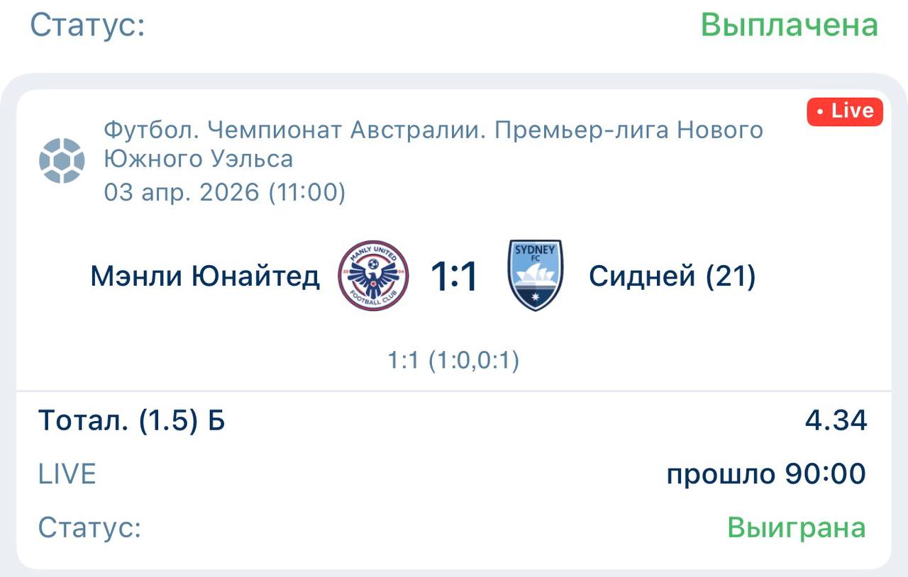 Телеграм канал «Live Bet 🏆»