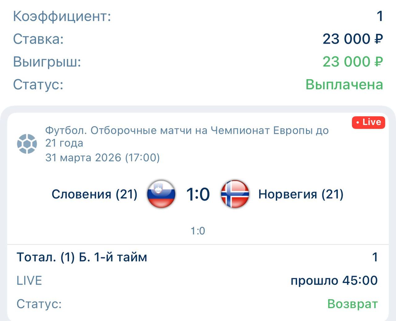 Телеграм канал «Live Bet 🏆»