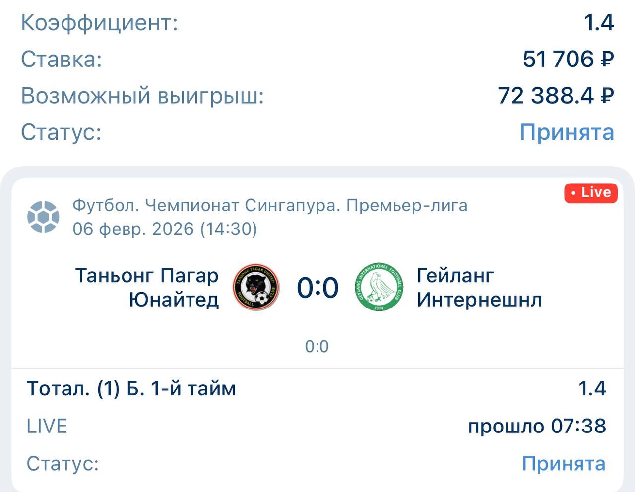 Телеграм канал «Live Bet 🏆»