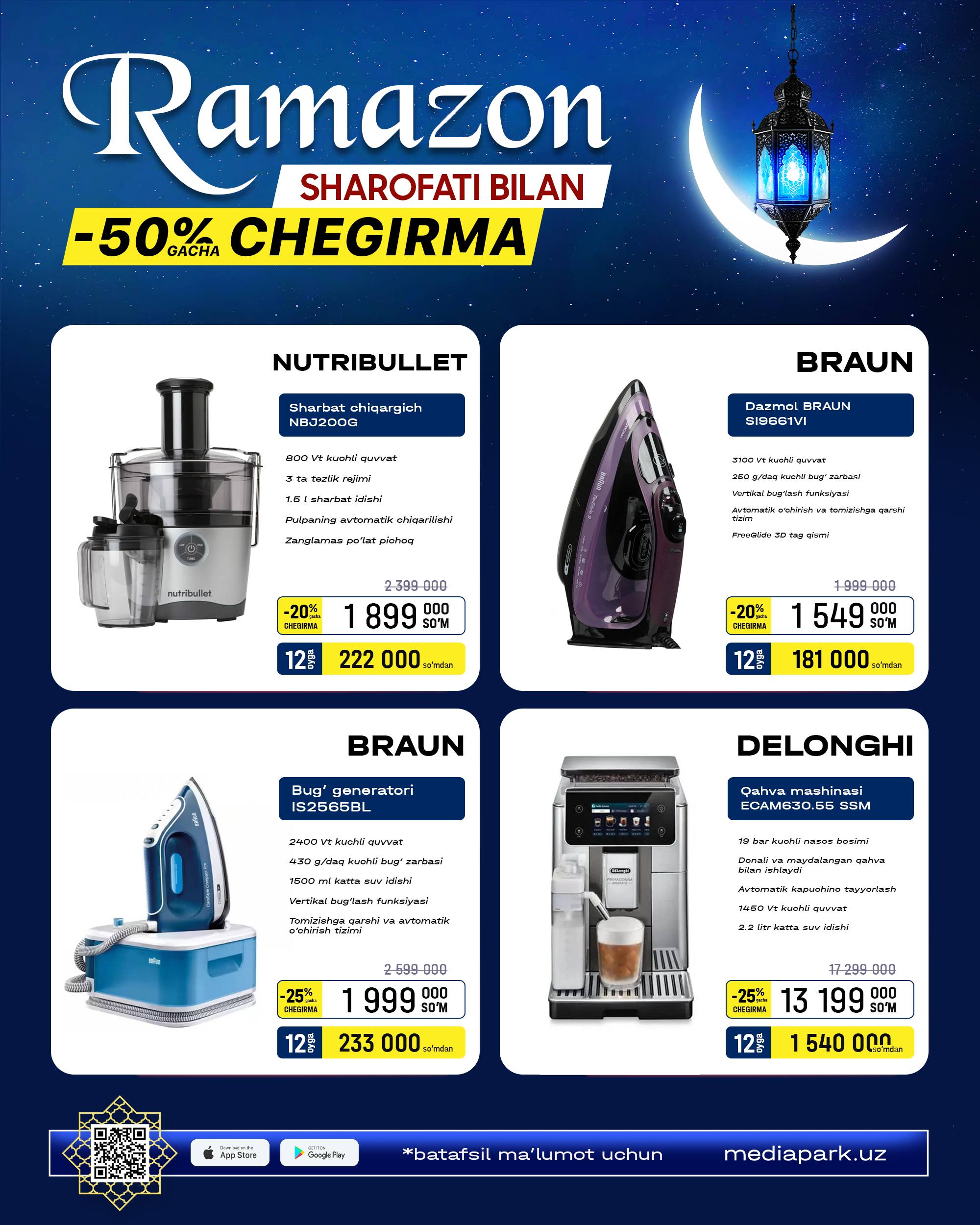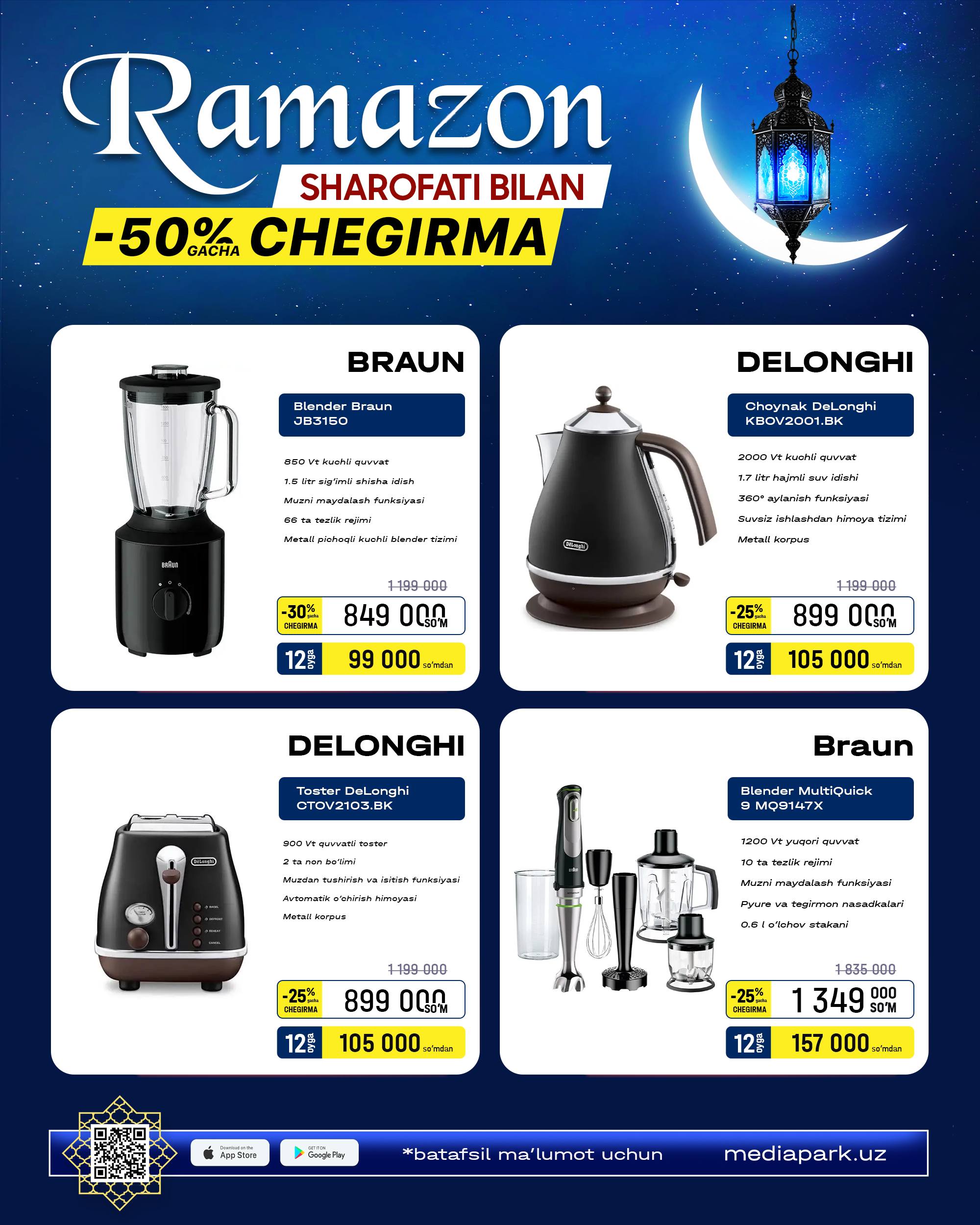 🔹MEDIAPARK’da Braun, Kenwood, Delonghi texnikalarini 25-martgacha chegirma narxlarda xarid qiling!