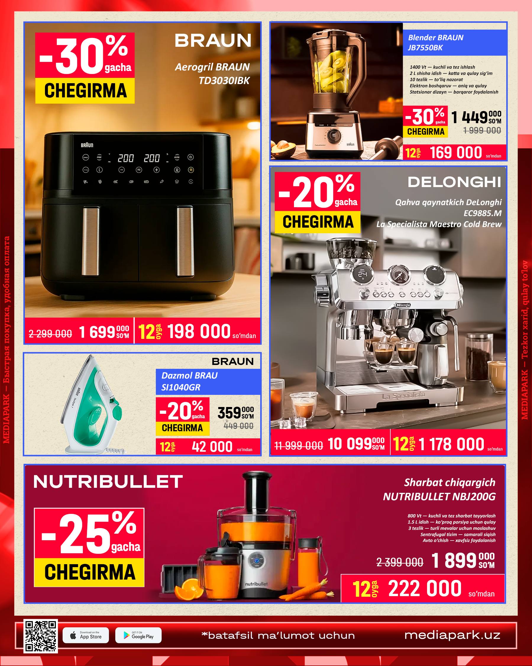 🔹MEDIAPARK’da Braun, Kenwood, Delonghi texnikalarini 16-aprelgacha chegirma narxlarda xarid qiling!