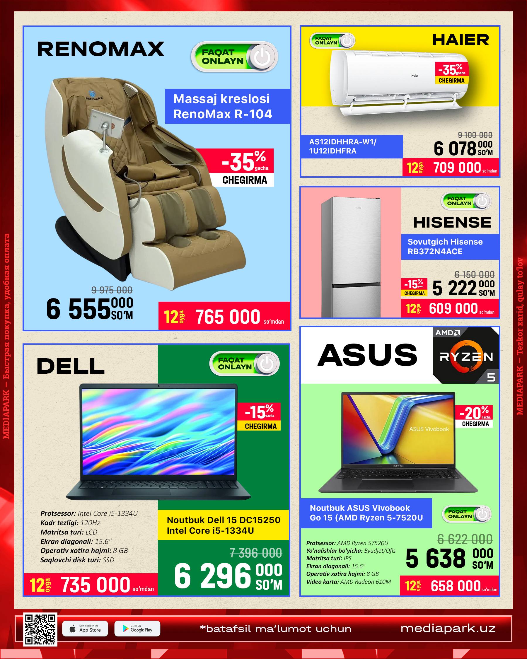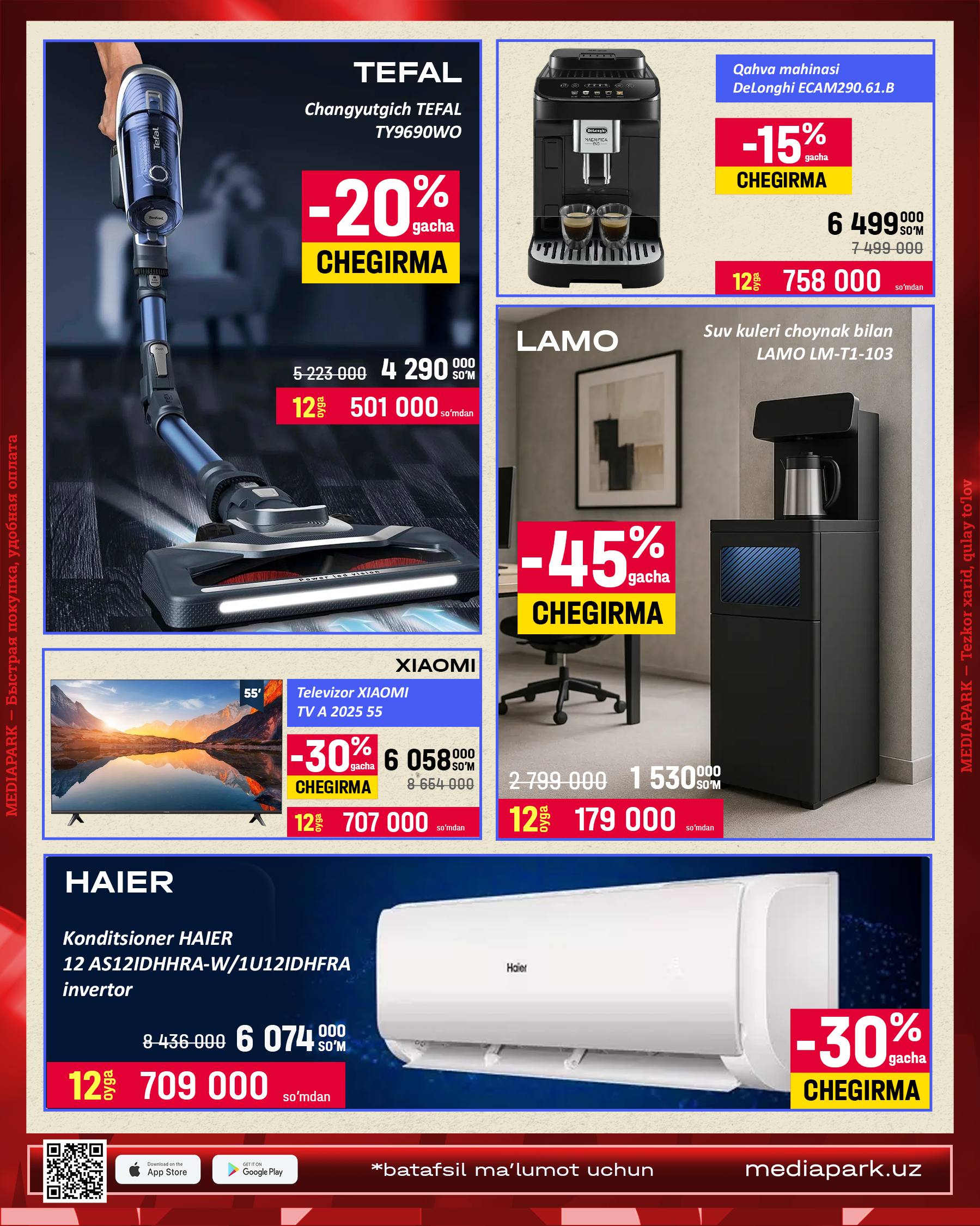 O'zingizga kerakli texnikani 2ta super qulay takliflardan birini tanlagan holda xarid qilish imkoniyatidan foydalanib qoling
