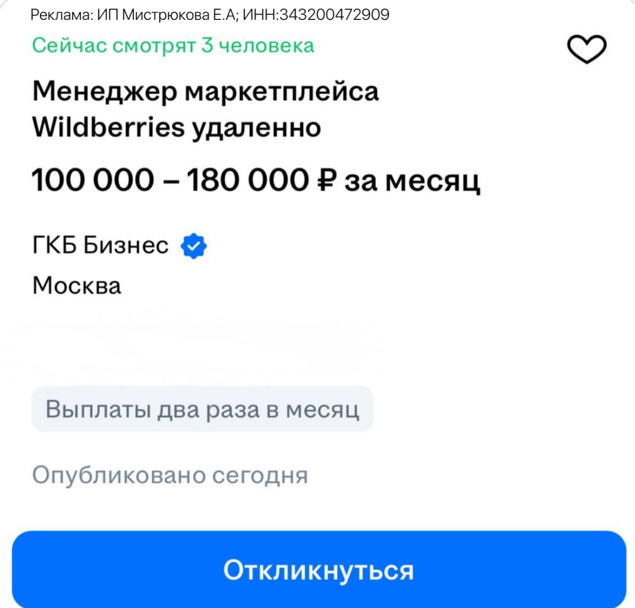 Если вы встретили вакансию с подозрением на мошенничество - сообщите нам! Примем меры.