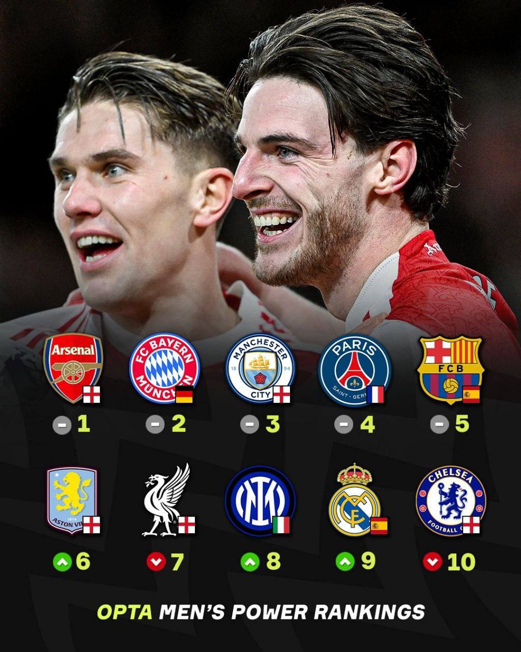 📊«Арсенал» — найкращий клуб світу за версією Opta на цей момент