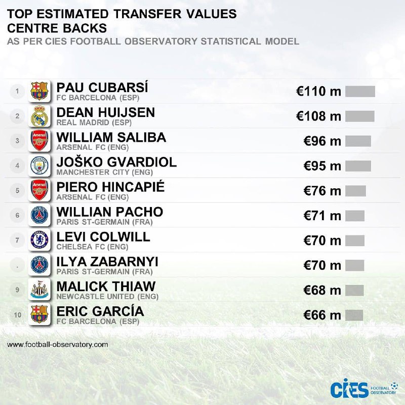 ⚡️Ілля Забарний потрапив до рейтингу найдорожчих центральних захисників світу та посів 8-е місце.