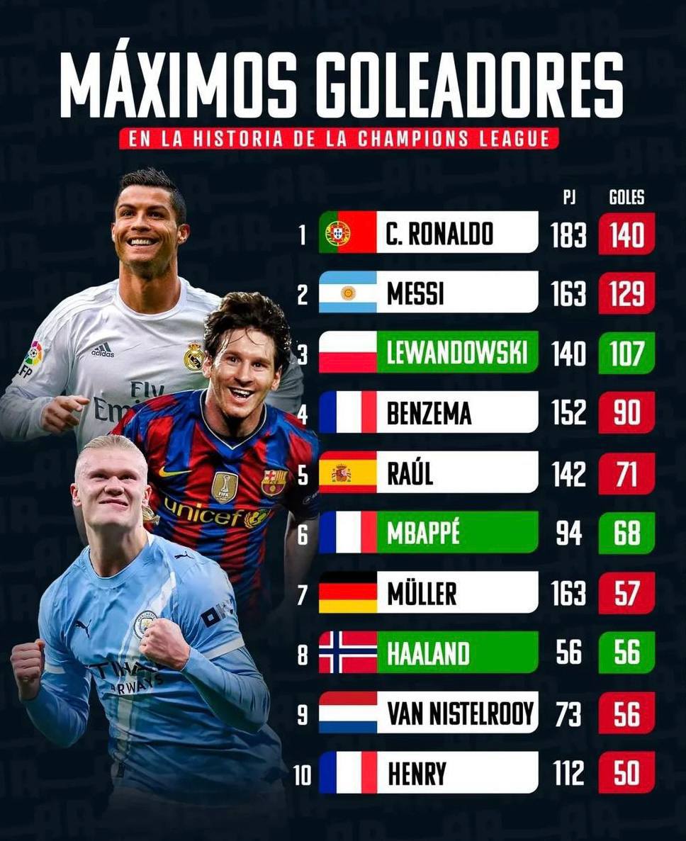 Найкращі бомбардири в історії Ліги Чемпіонів станом на зараз