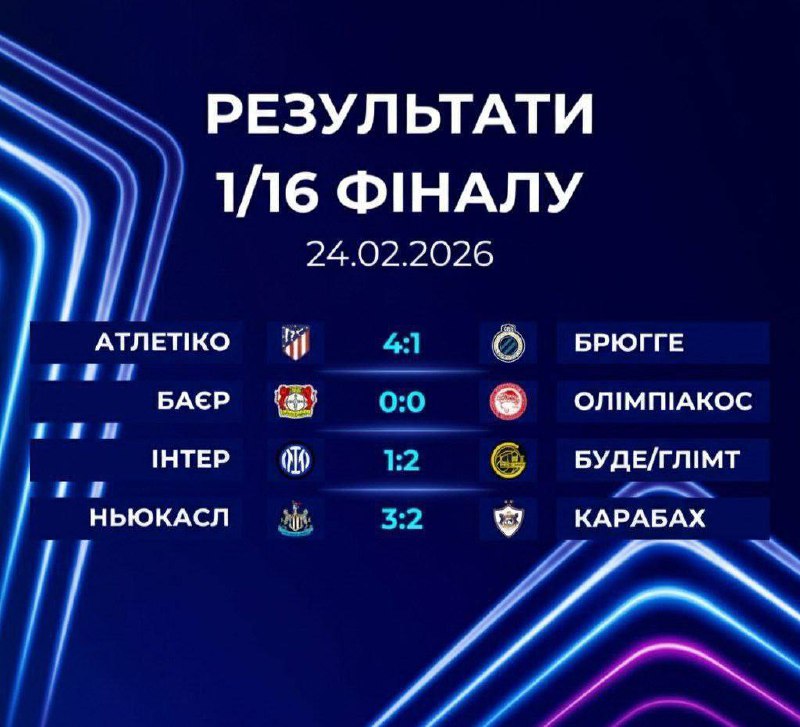 Результати матчів 1/16 фіналу Ліги Чемпіонів за