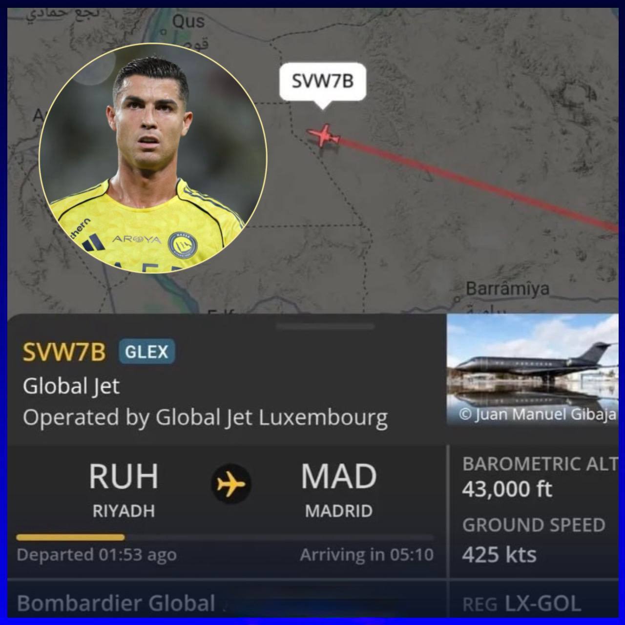 Приватний літак Кріштіану вилетів з Ер-Ріяда до Мадрида на тлі ракетних ударів.