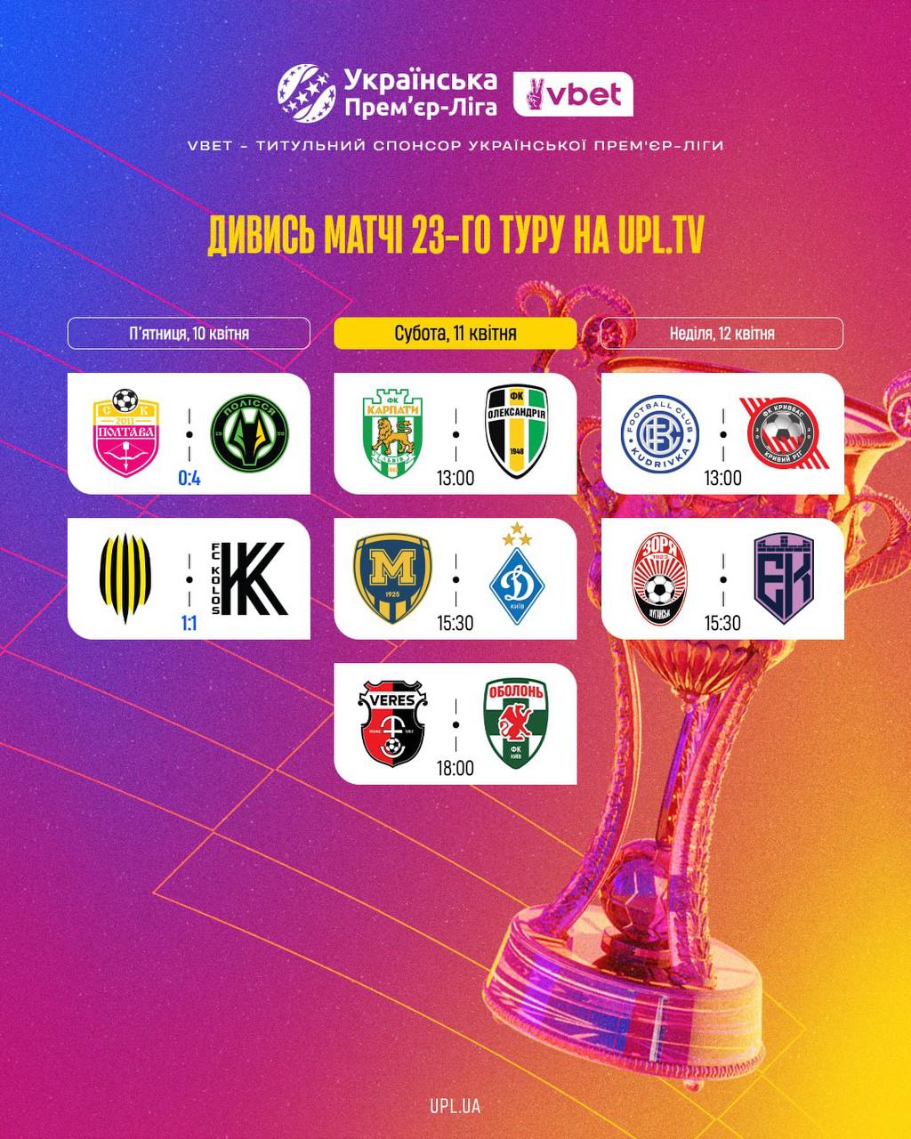 Розклад матчів другого ігрового дня 23-го туру VBET Української Премʼєр-Ліги!