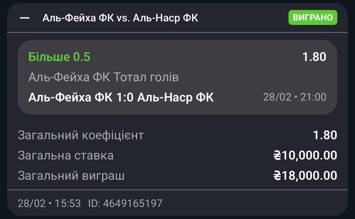 Прогноз: Инд. тотал Аль-Фейха (0,5) больше за кф. 1,80
