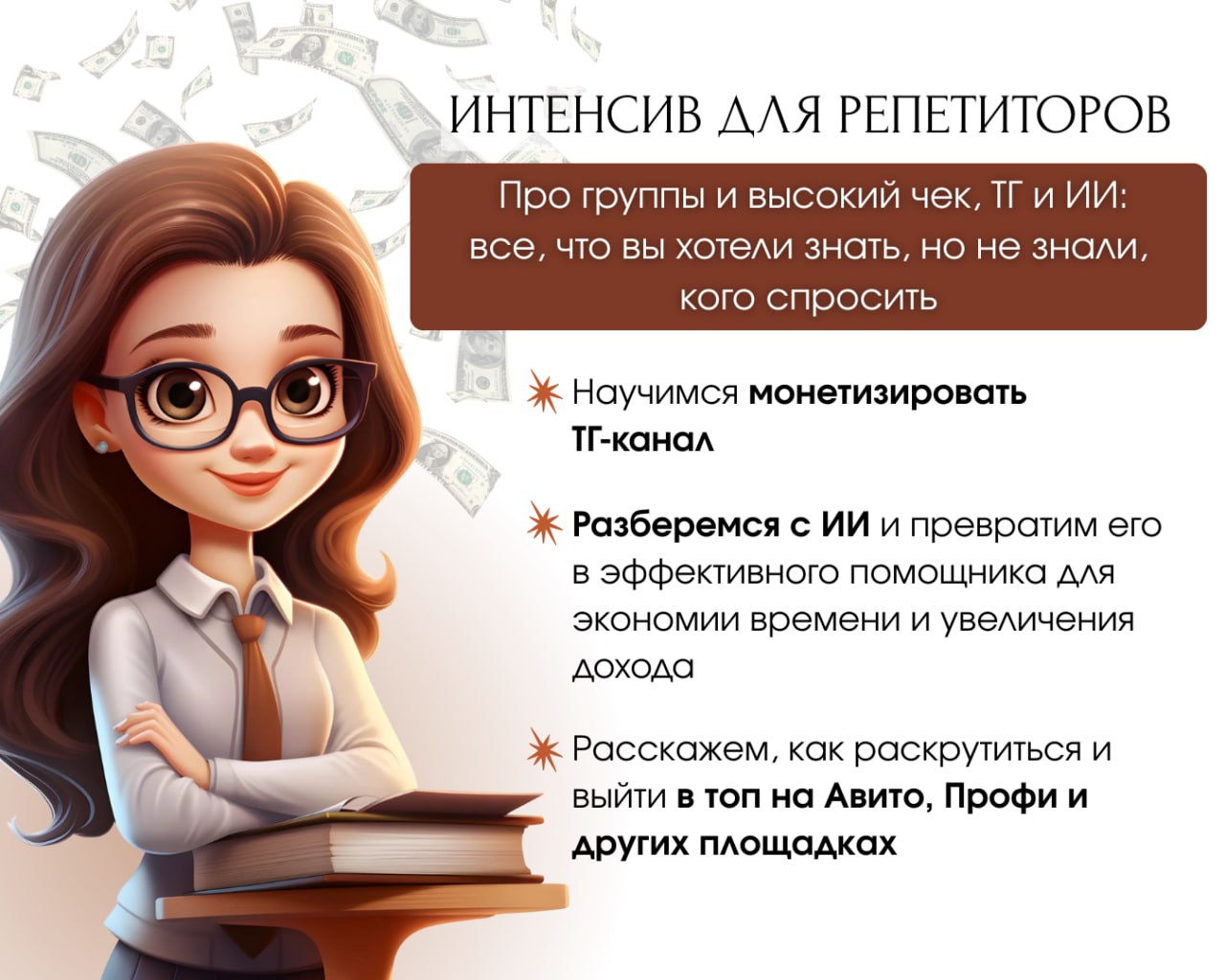 Интенсив для репетиторов про группы и высокий чек, ТГ и ИИ – все, что вы хотели знать, но не знали, кого спросить