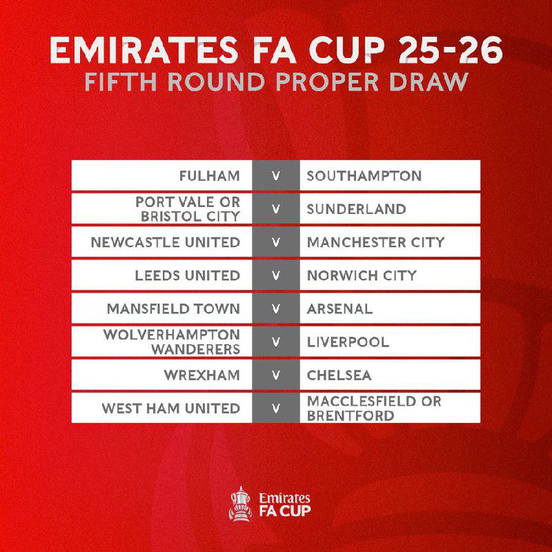 Результаты жеребьевки 1/8 финала Кубка Англии 🏆