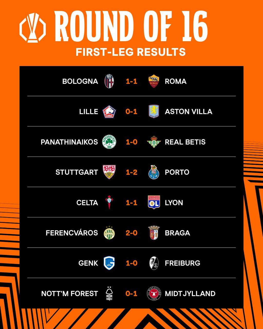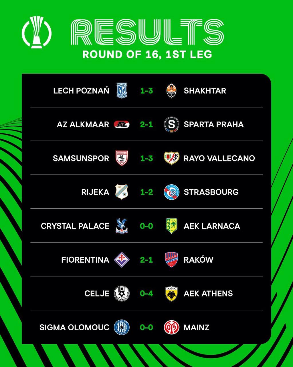 Результаты первых матчей 1/8 финала Лиги Европы и Лиги конференций 🟢🟠