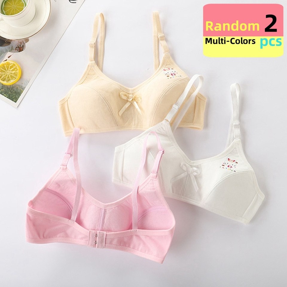 🏆 2PC Random color Girls Without Steel Ring Wrapped Chest Vest Comfort Bra Underwear Sports Puberty Underwear Bra 8-14Year