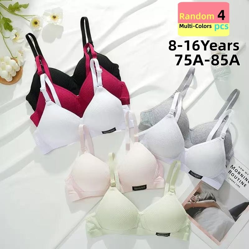 🏆 4PC Random colors Young Girls' Bra Girls' Underwear Students' Bra Developing Period Thin Comfortable Without Steel Ring Bra