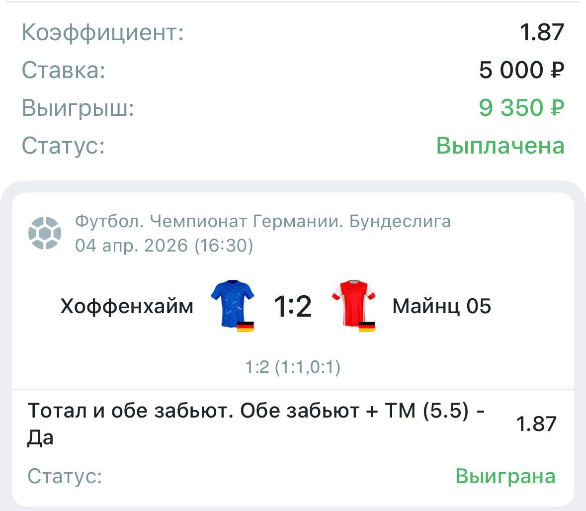 📊Коэффициент - 1.87 ✅