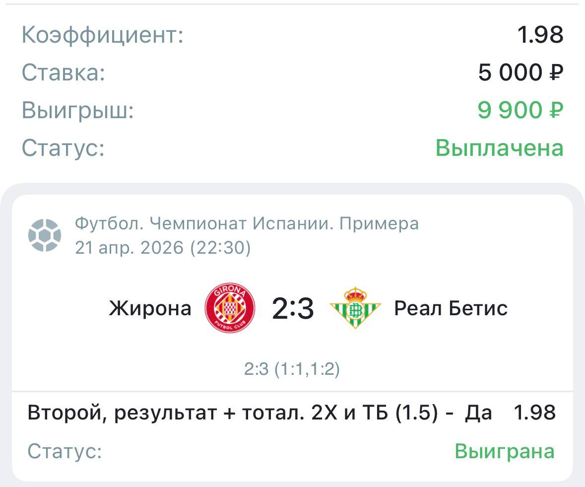 Жирона набрала 8 очков за пять последних туров, но расслабляться рано. От зоны вылета команду отделяют 6 баллов, а плотность в нижней части таблицы высокая. Хотя команда Мичела нащупала свою игру, что подтверждают победа над Вильярреалом и ничья с Реалом на «Бернабеу». Дома Жирона и вовсе преобразилась – 4 победы и ничья в шести последних турах. На этом отрезке каталонцы обыграли даже Барселону. Единственное, что тревожит, это оборона, которая пропустила 21 мяч за 15 матчей на своей территории. У Бетиса уже 7 туров без побед в Примере, а их красивая комбинационная игра не маскирует провал. «Зелено-белые» держатся в еврокубковой зоне только благодаря осечкам конкурентов, а не своим результатам. На невезение спад списывать уже нельзя. На выезде картина не радужнее. Единственное, что греет душу, Бетис давно не уходит с поля хотя бы без забитого гола, это единичные случаи.