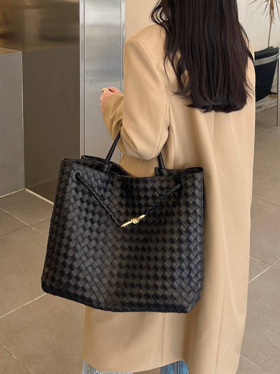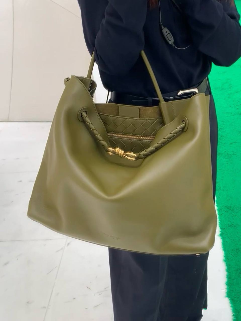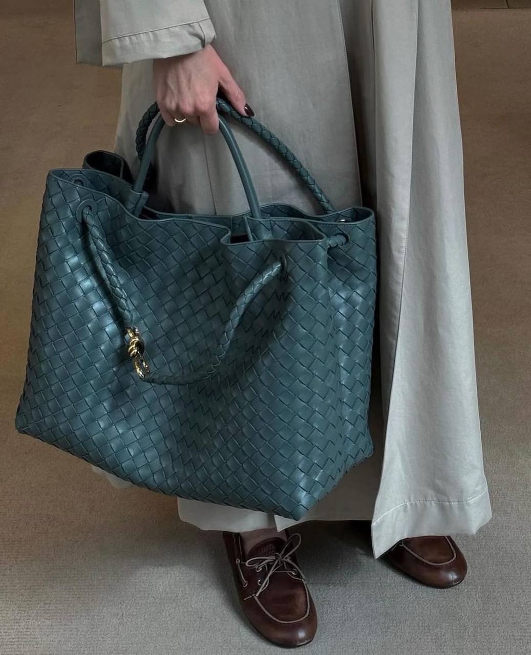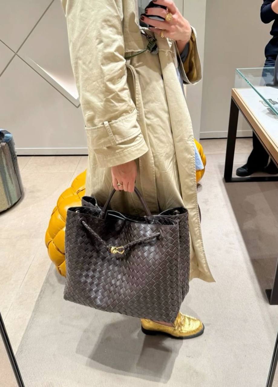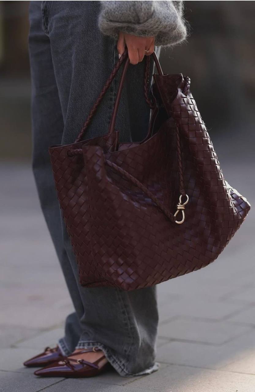 Та же техника Intrecciato, ручное плетение, оригинальная, мягкая кожа, которая красиво «живёт» в движении.