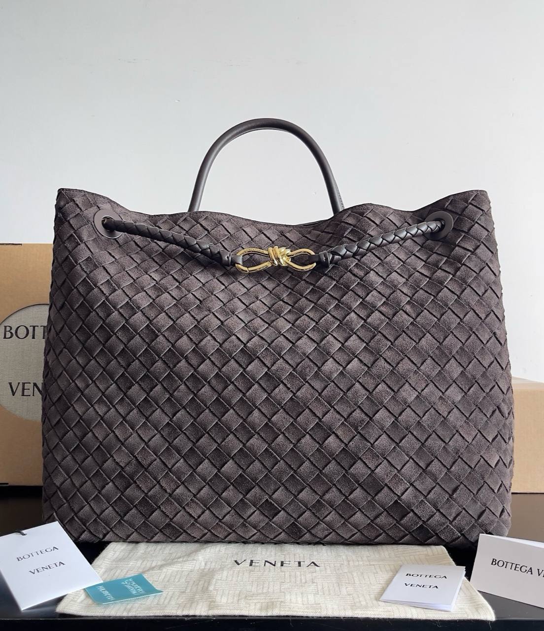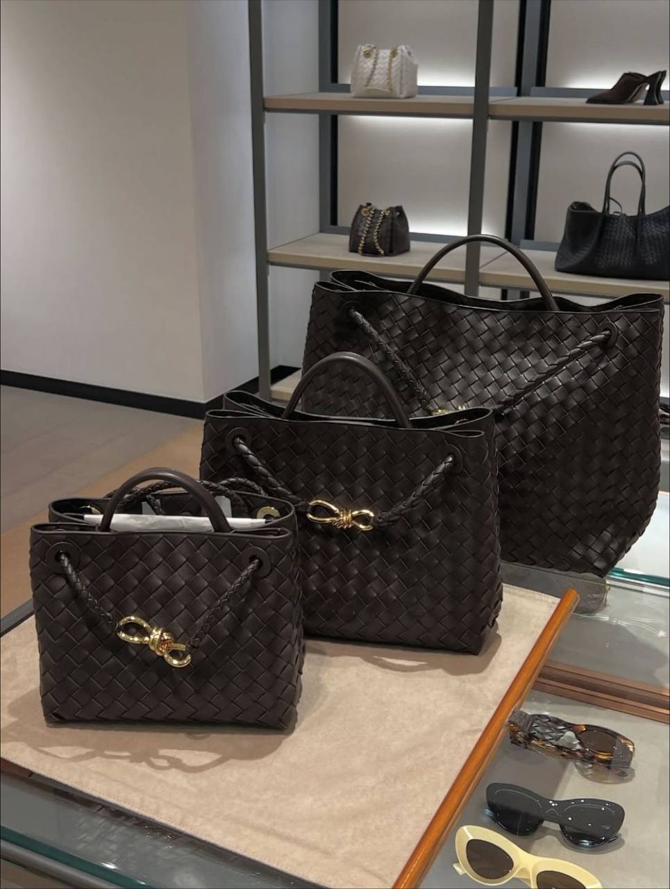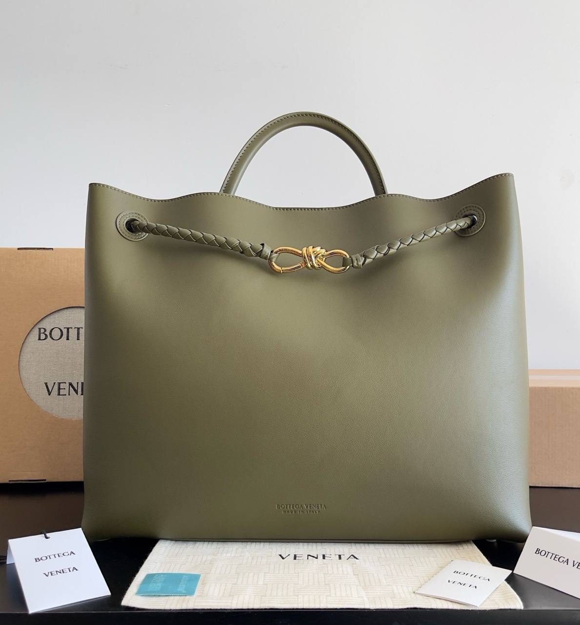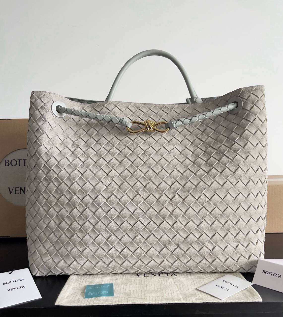 Та же техника Intrecciato, ручное плетение, оригинальная, мягкая кожа, которая красиво «живёт» в движении.