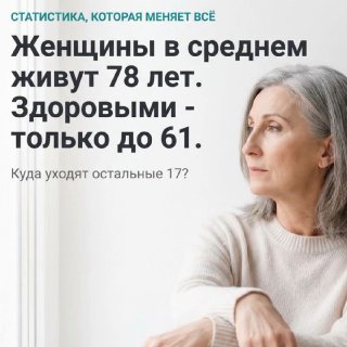 🤩 Женщины в России живут в среднем 78 лет. Здоровыми, по данным Росстата, только до 61. Семнадцать лет в хронических болезнях, в зависимости от таблеток, в постепенной потере того, что раньше было нормой.