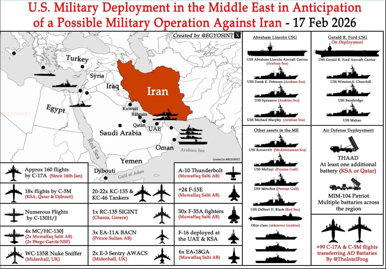 Ще ніколи США не розгортали стільки сил проти потенційного ворога, не завдаючи ударів. росЗМІ пишуть, що сім'ї російських дипломатів зараз вивозять з Близького Сходу в москву.