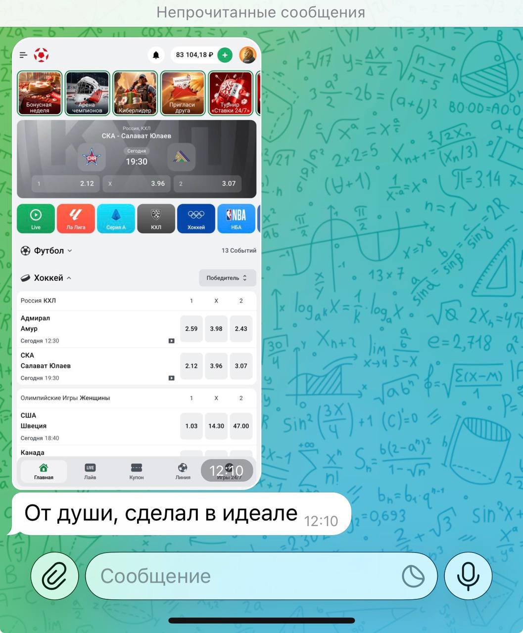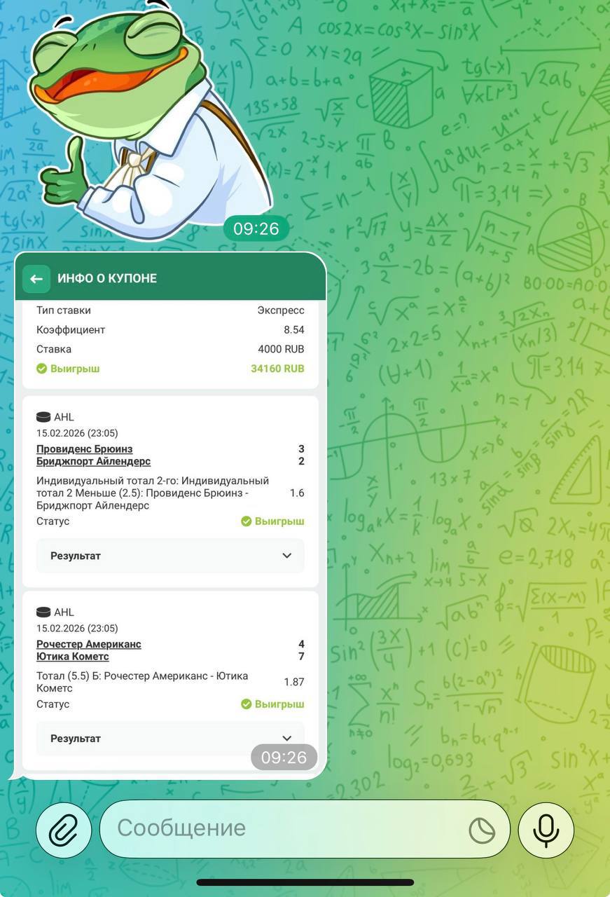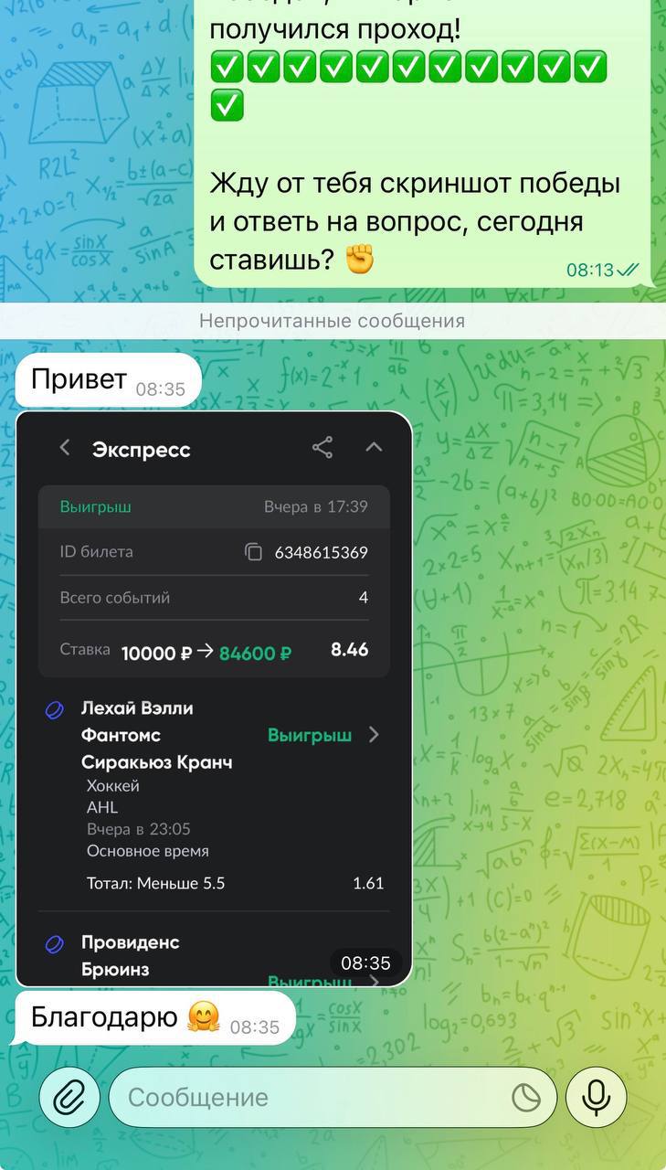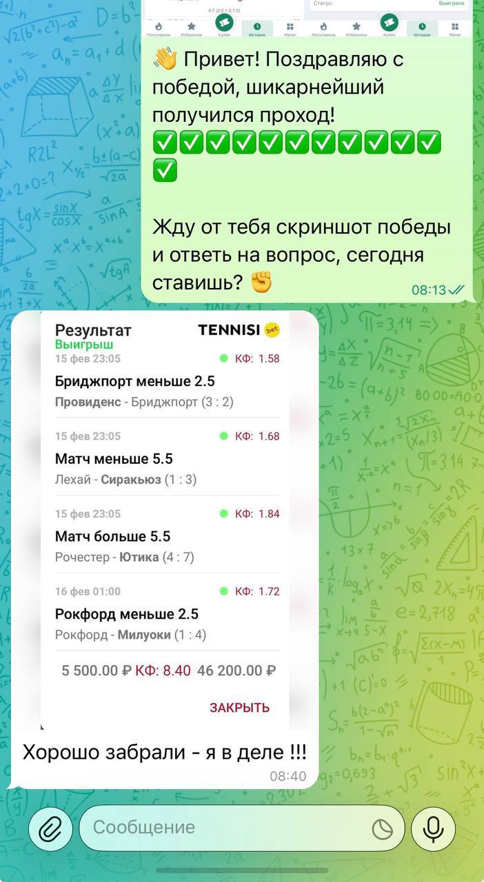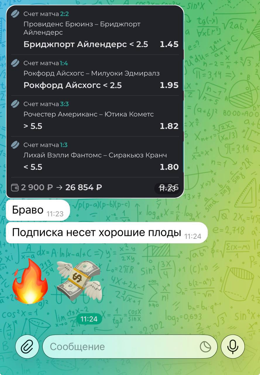 🥶 Мой проект отличается своей честностью и прозрачностью. Никогда не одной ставки здесь не будет удалено из ленты канала. Я не ввожу в заблуждение людей, а помогаю зарабатывать деньги в ставках на спорт.