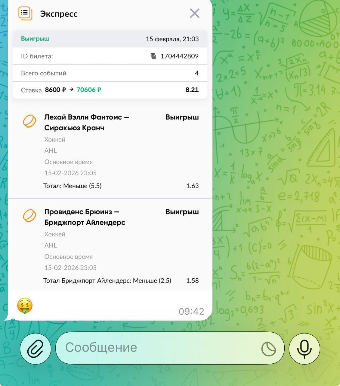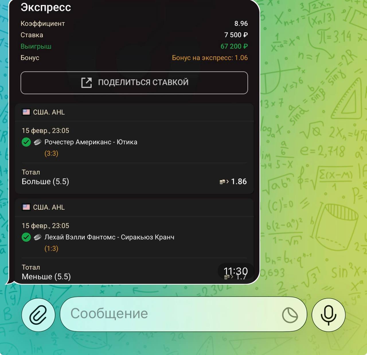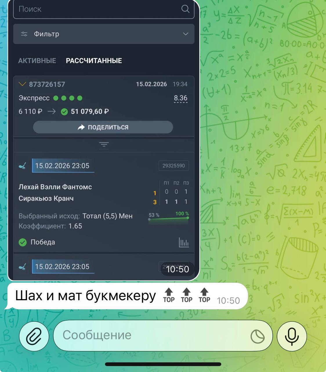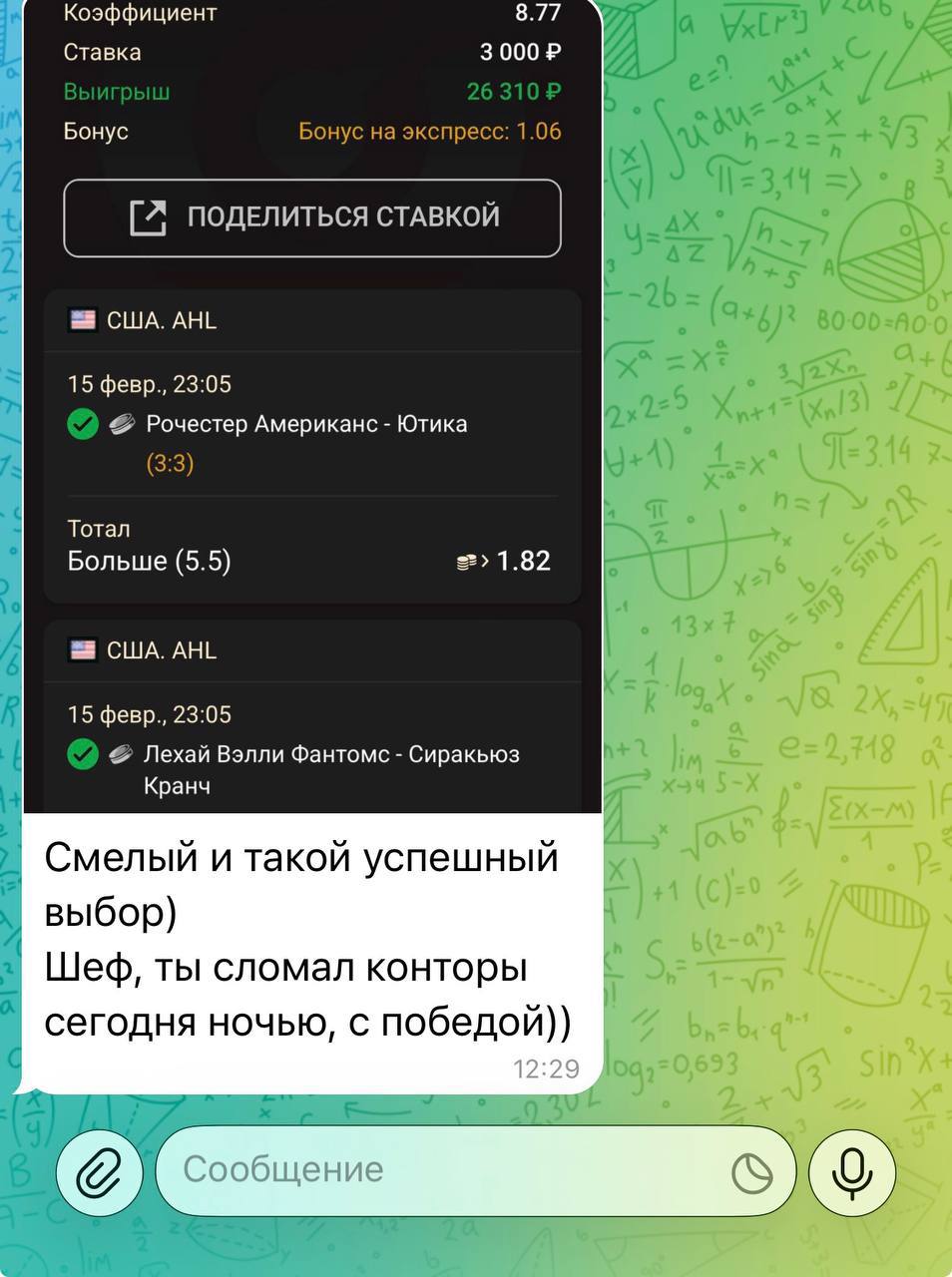 🥶 Мой проект отличается своей честностью и прозрачностью. Никогда не одной ставки здесь не будет удалено из ленты канала. Я не ввожу в заблуждение людей, а помогаю зарабатывать деньги в ставках на спорт.