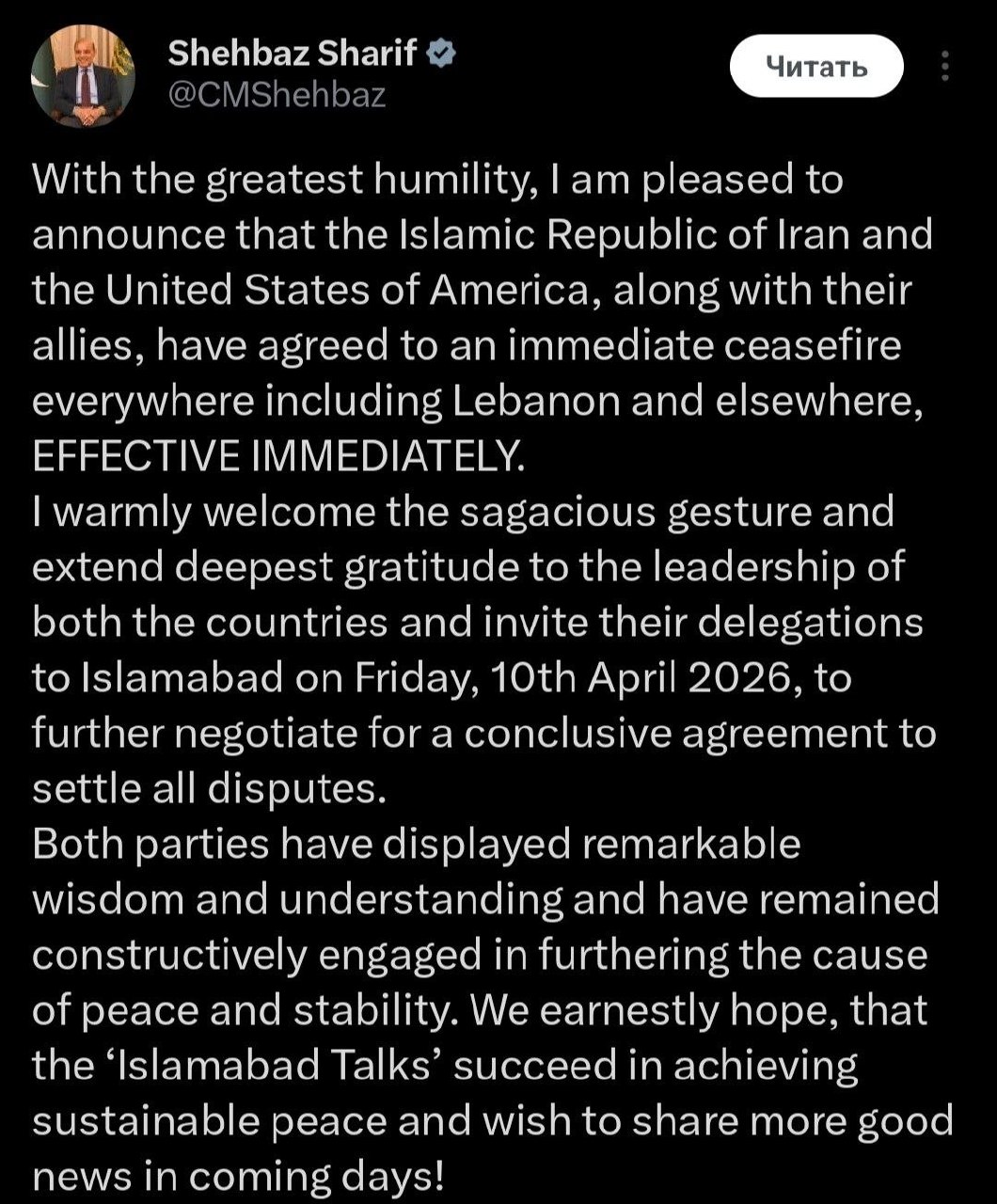 — Барча фронтларда, жумладан, “Ҳизбуллоҳ” билан бўлган зиддиятда жанговар ҳаракатларни тўхтатиш.