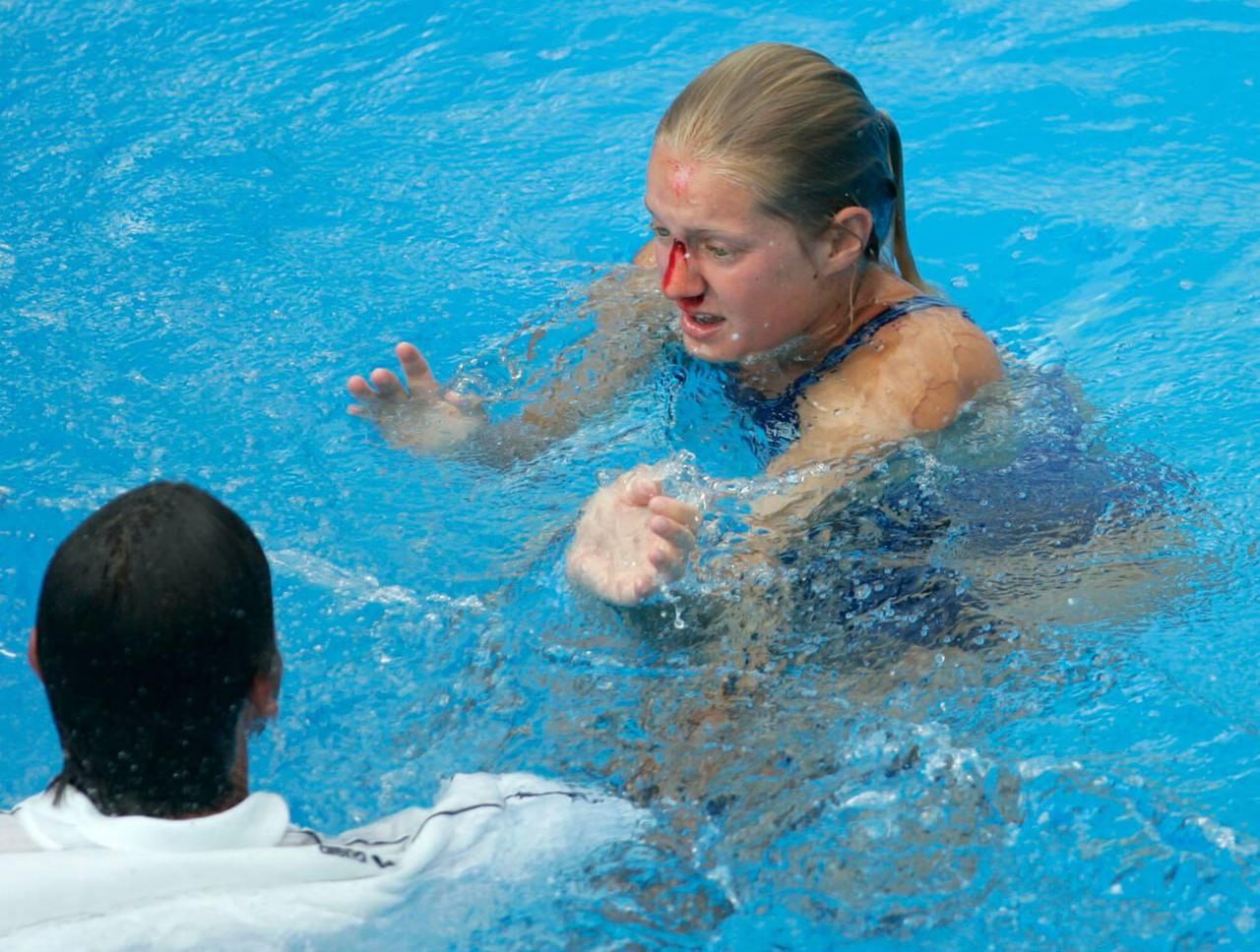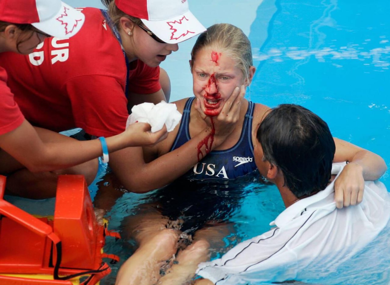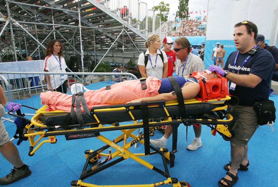 В июле 2005 года на чемпионате мира по водным видам спорта в Монреале американка Челси Дэвис время четвёртого прыжка, который выполнялся из задней стойки, сильно ударилась головой о трамплин. Потеряв на мгновение сознание, девушка пластом рухнула в воду.