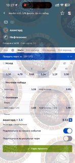 Возьму сегодня индивидуальный тотал «Авангарда» 3,5 больше!