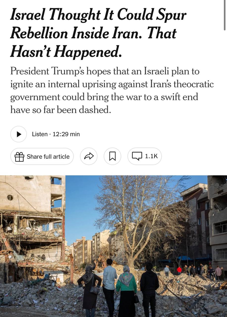 ⚡️План «Моссада» по дестабилизации Ирана провалился, — The New York Times.