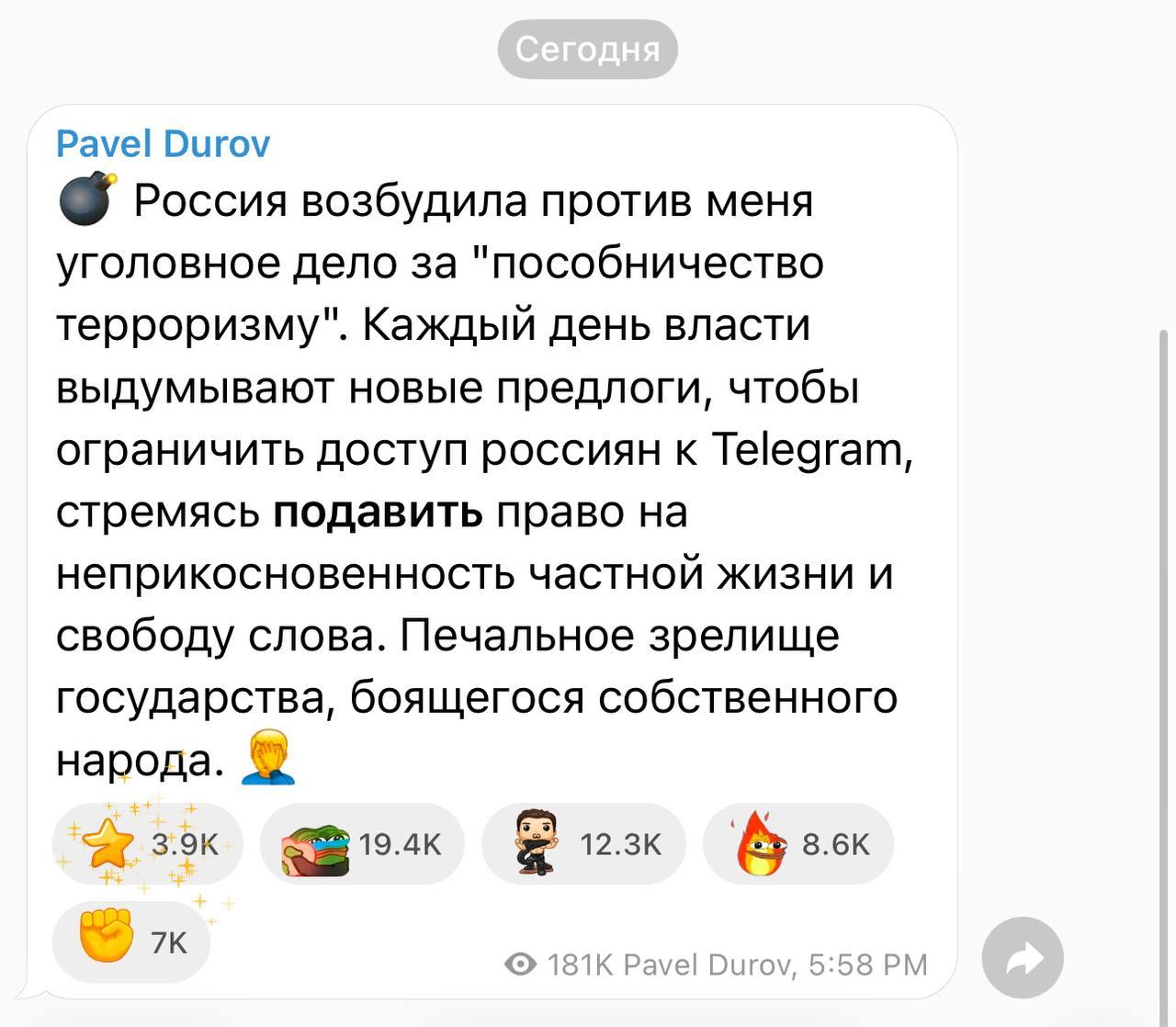 На Павла Дурова завели уголовное дело! Telegram все ближе к блокировке