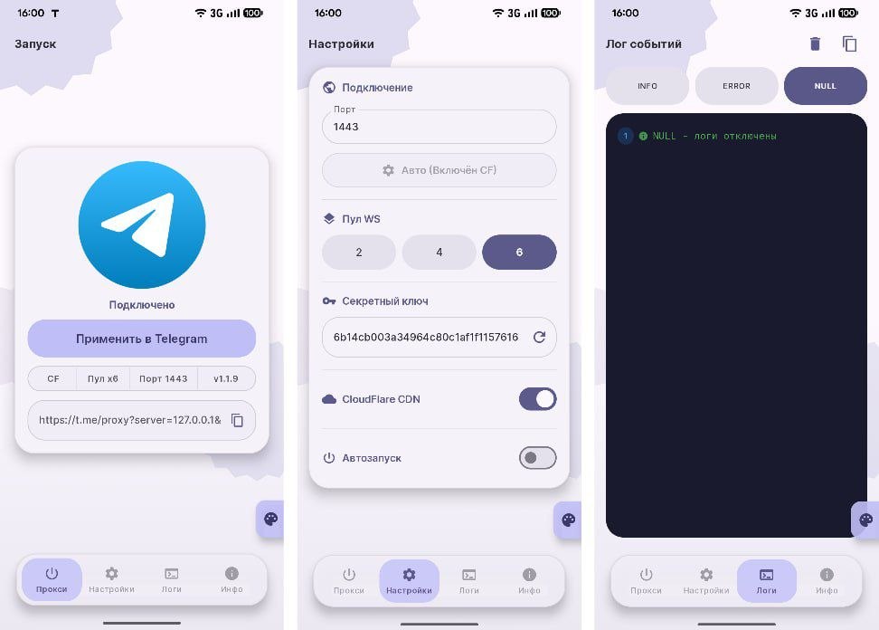 Это локальный MTProto-прокси для Telegram на Android.