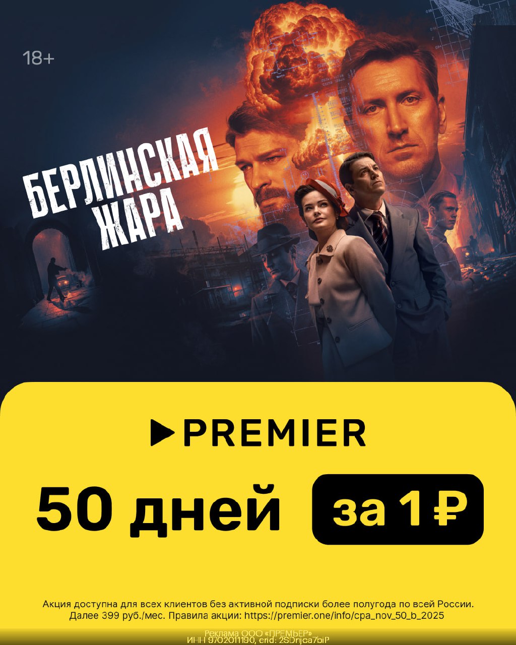 Получаем 50 дней подписки PREMIER всего за 1₽