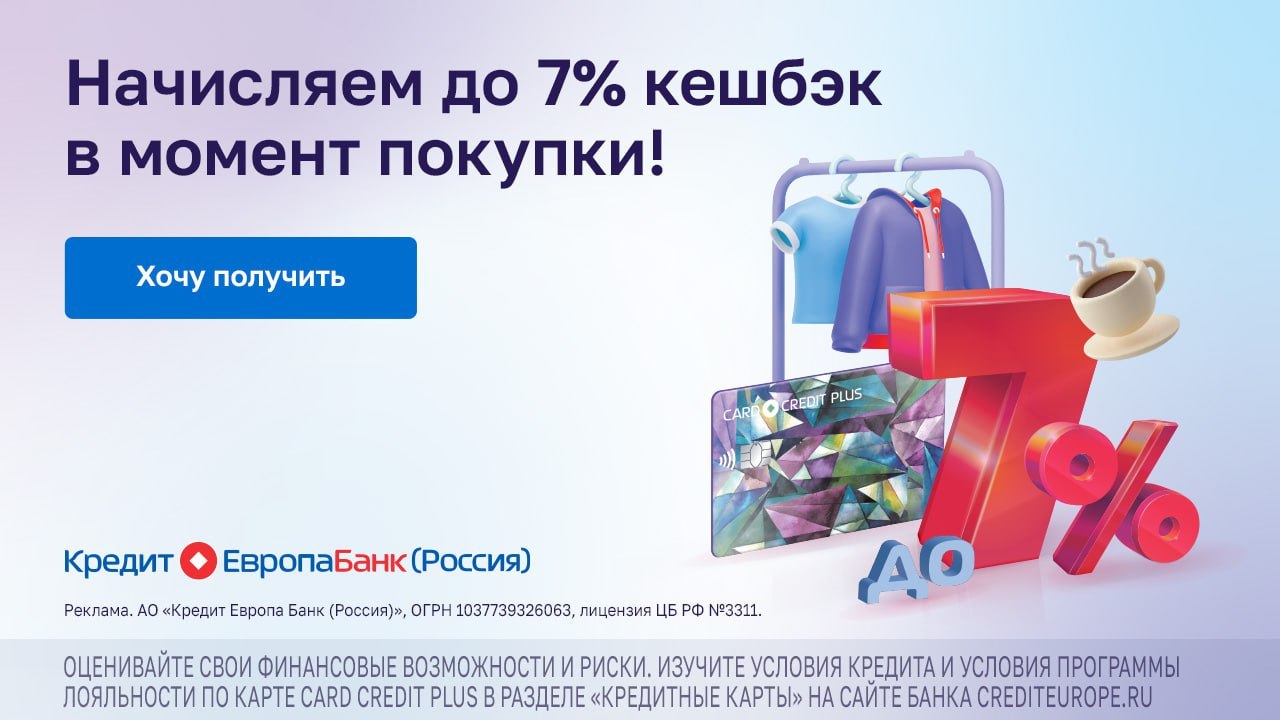 💳 Кредит Европа Банк: карта МИР с кэшбэком до 7% и бесплатным обслуживанием